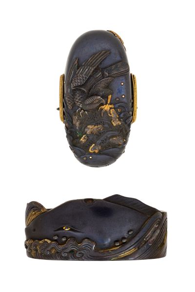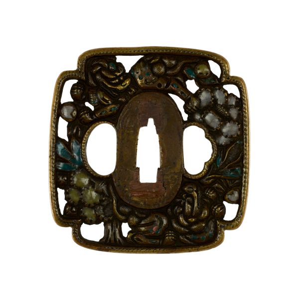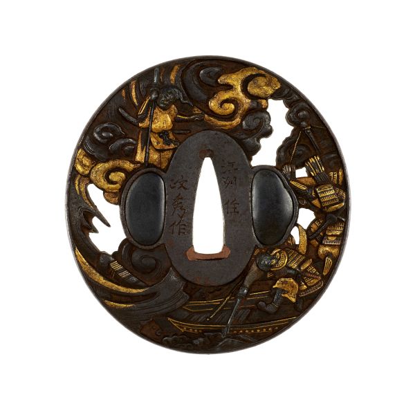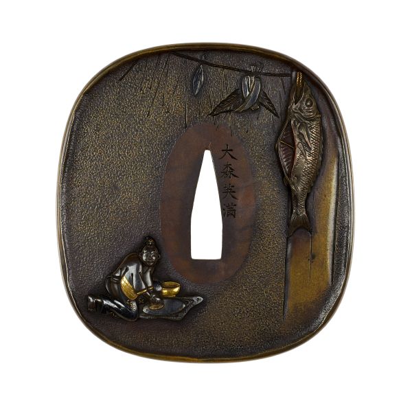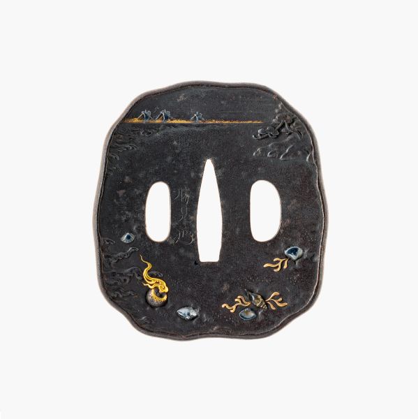 Tsuba 鐔 mit der Landschaft von Miwa 三輪