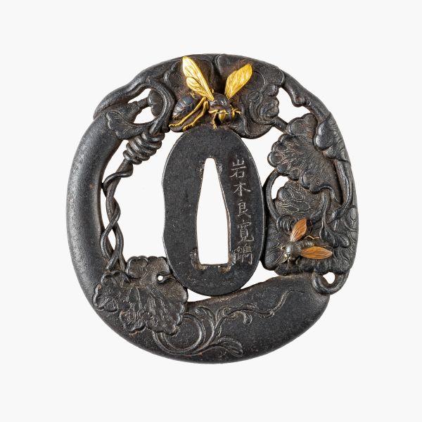 Tsuba 鐔 mit Ameisen auf Baumrinde