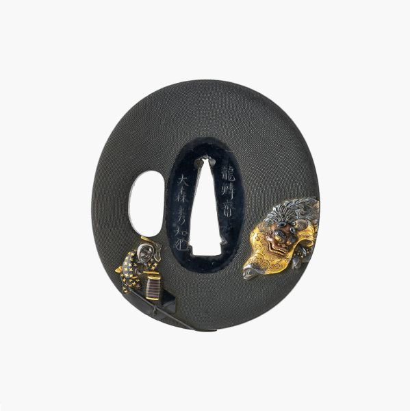Tsuba 鐔 mit Päonie und zwei Löwen
